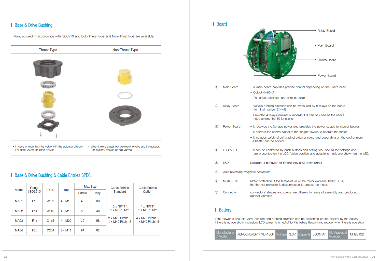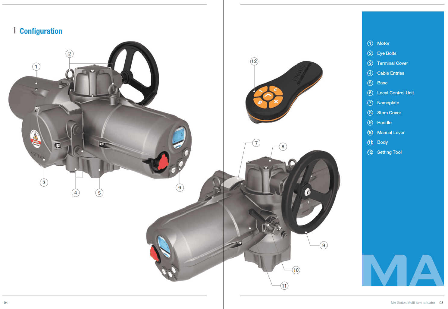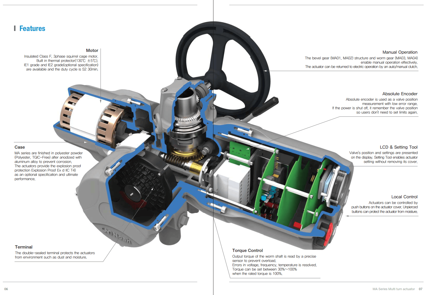 MA series, multi-turn actuators have electronic torque sensors that can work with a remote control with torque range of 1kg/m to 180kg/m. Also suitable for gate valves.